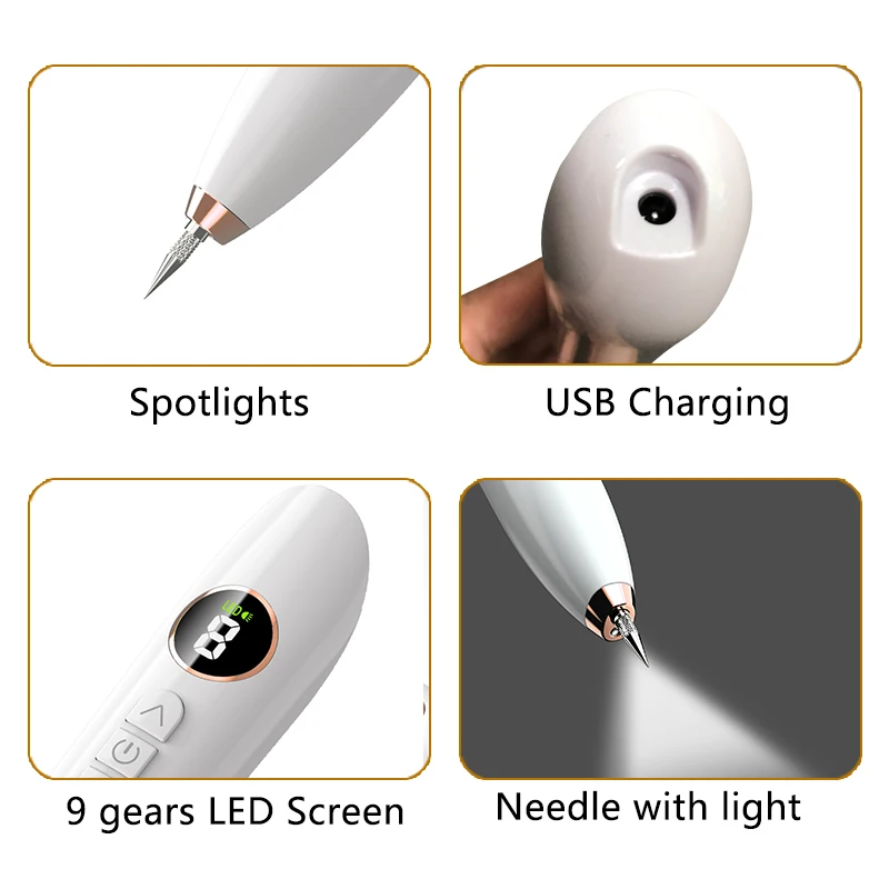 1. Используйте новейшие технологии, управление микрокомпьютером, безопасно, удобно и быстро.2. Он имеет 9 видов интенсивности для различных процедур. Нижний уровень используется на пятнах и веснушках. Сильный уровень используется на родинок и кожных бирках.3. Удалите Пятно без крови.4. Точечная ручка из нержавеющей стали не токсична, гигиенична, не ржавеет для безопасного использования.5. ЖК-дисплей показывает, сколько электричества и уровня интенсивности.6. Заряжайте напрямую с помощью USB линии, легко носить с собой и легко управлять. Аккумулятор большой емкости.