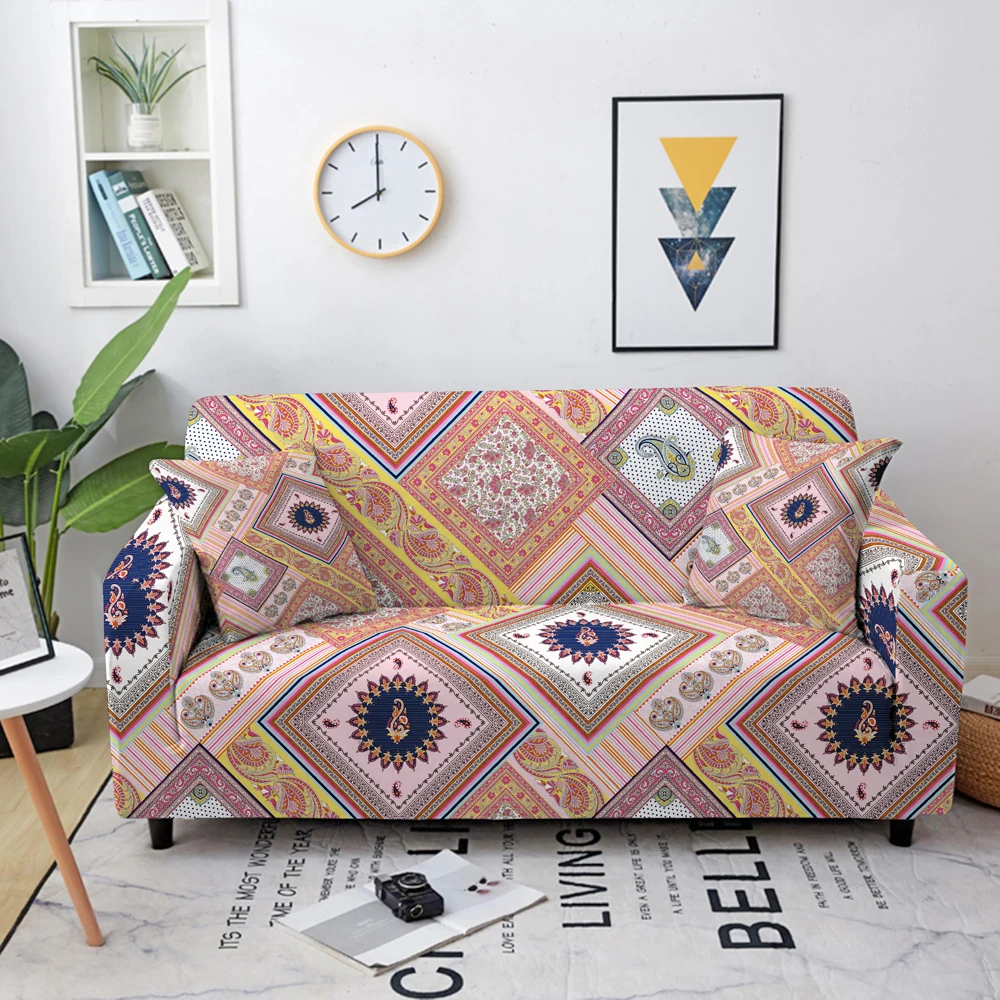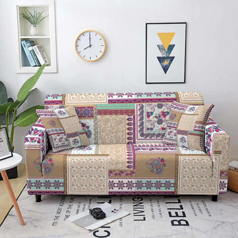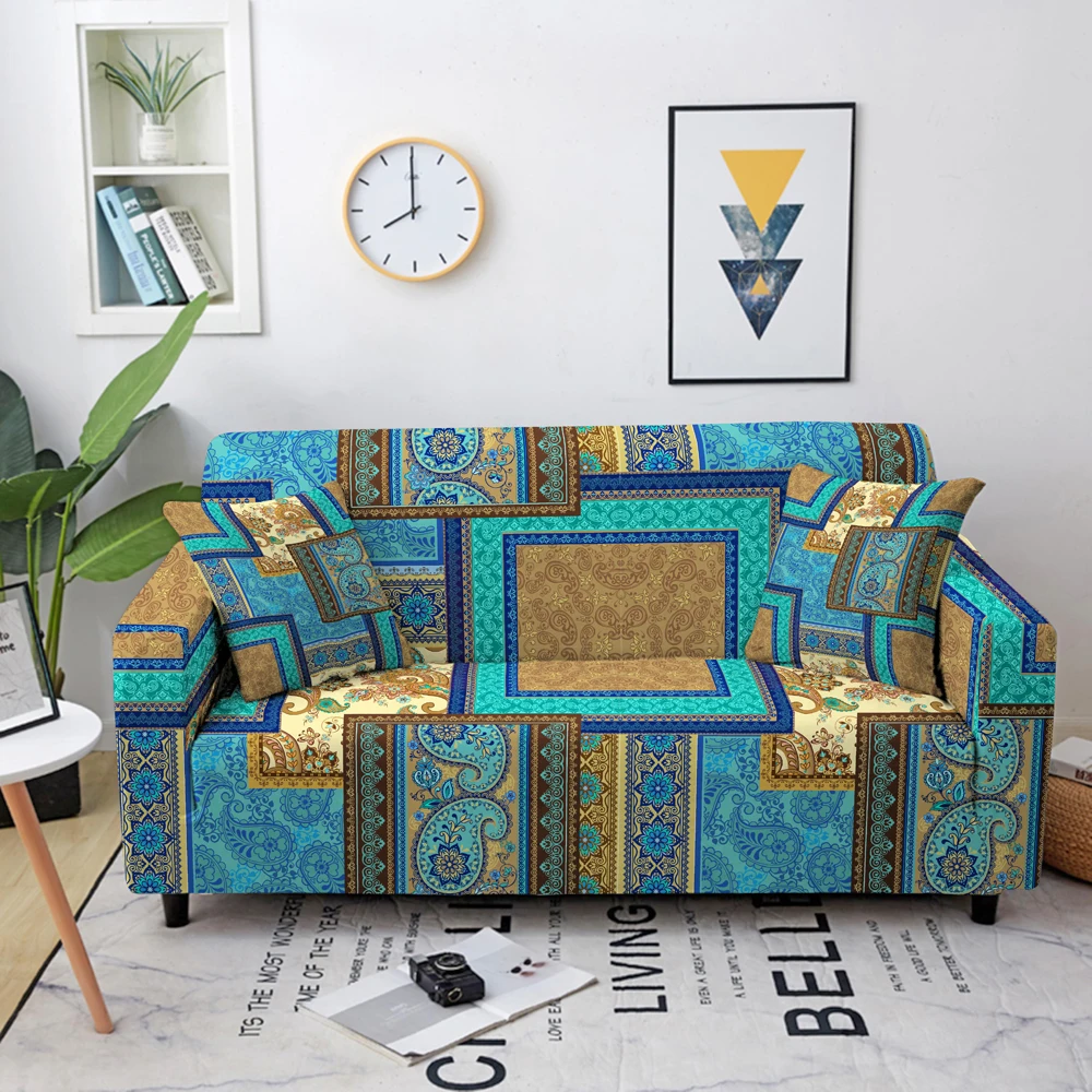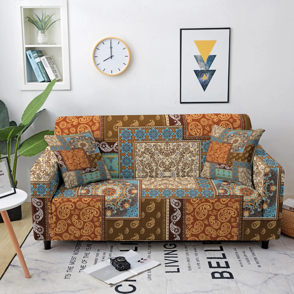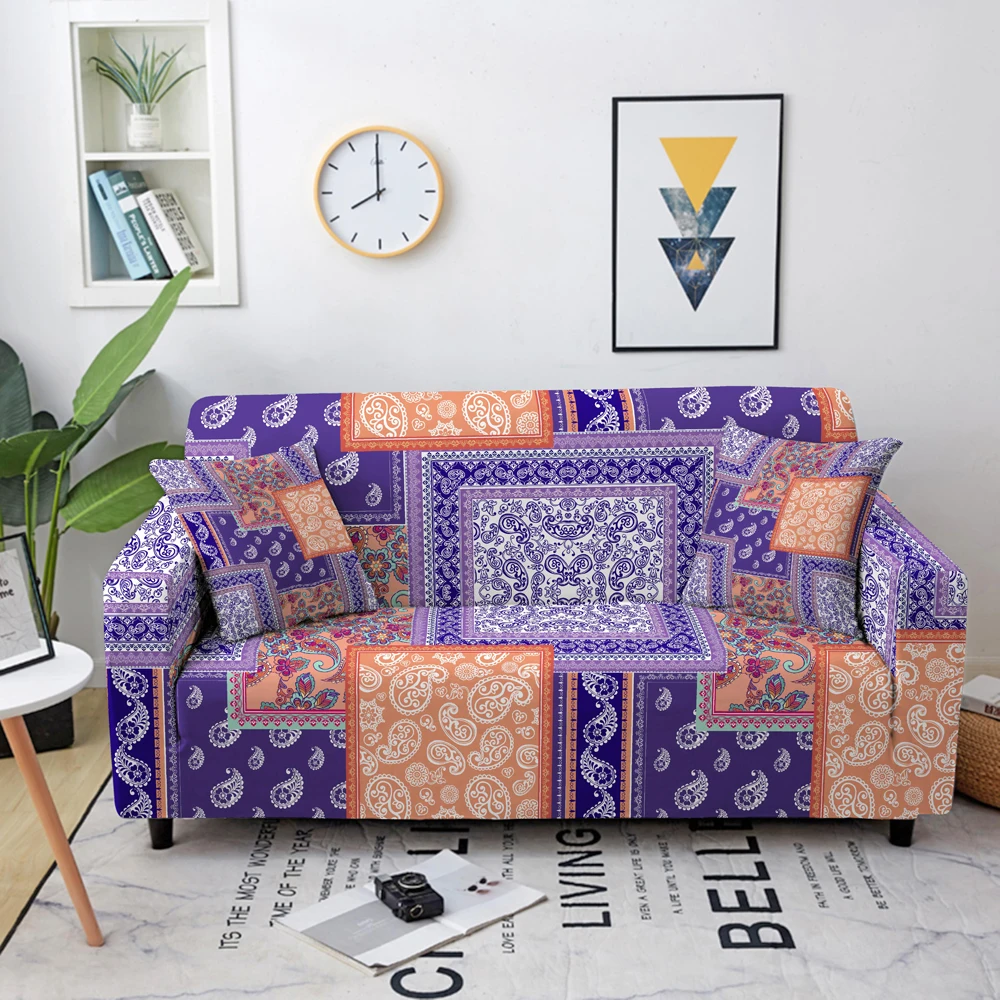 Эластичный чехол для дивана в стиле бохо, с принтом пейсли, Натяжной чехол для дивана в богемном стиле, чехол для углового дивана