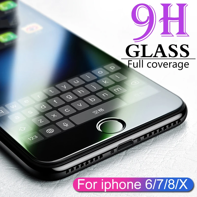 Закаленное стекло с полным покрытием для iPhone 7 8 6 6s Plus X, за...