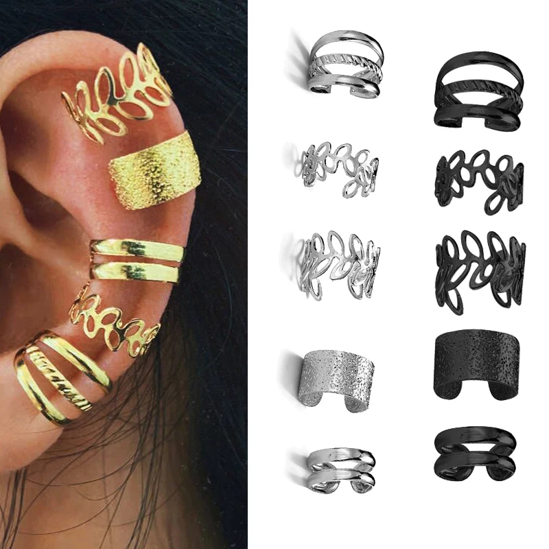 Клипсы-каффы женские, с листьями золотого цвета, 2021, 5 шт.