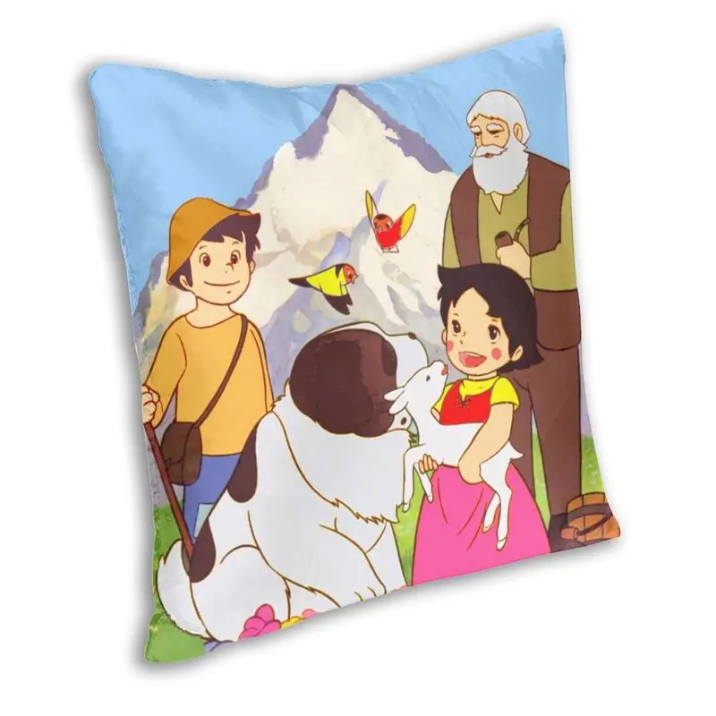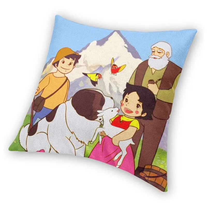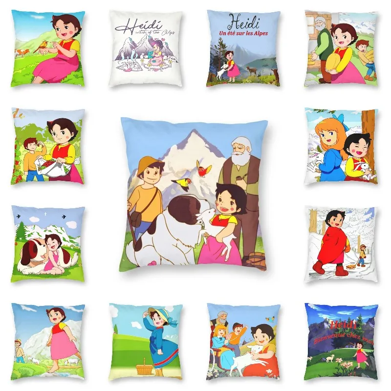 Двухсторонняя наволочка Heidi, с изображением Питера и дедушки Альпы, козы, горы, 40x40