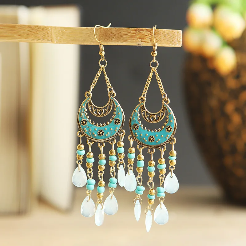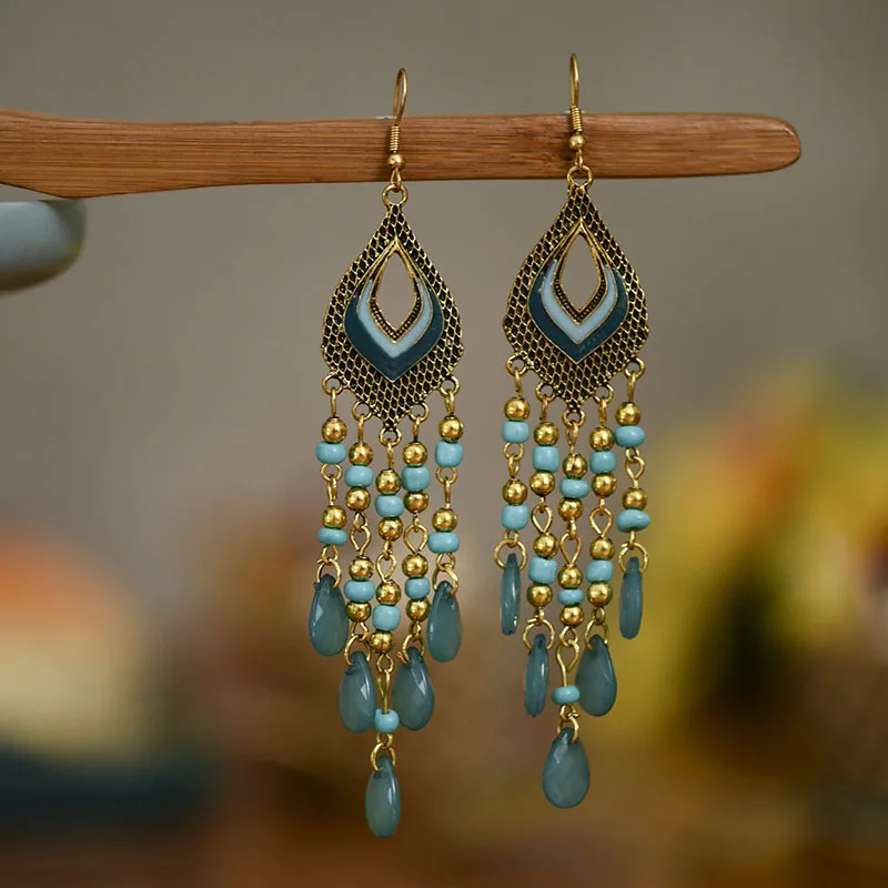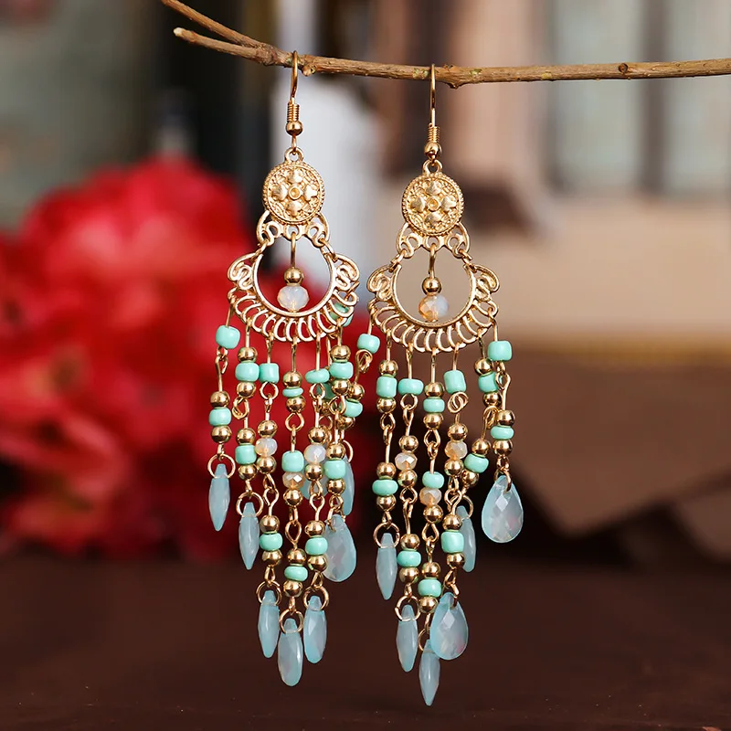 Богемные позолоченные серьги длинная водяная капля с кисточками для...