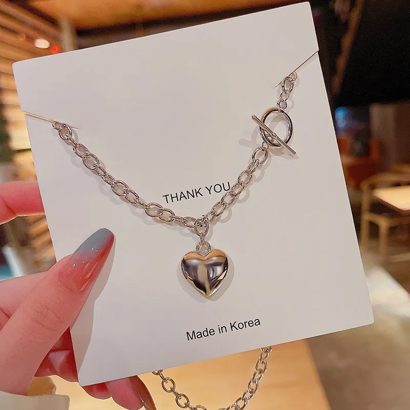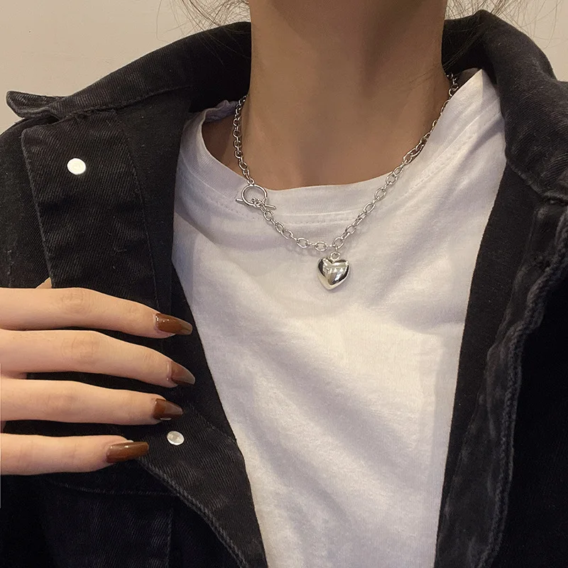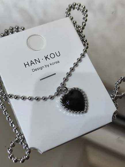 Женское винтажное ожерелье с черным сердцем и бусинами из титановой стали