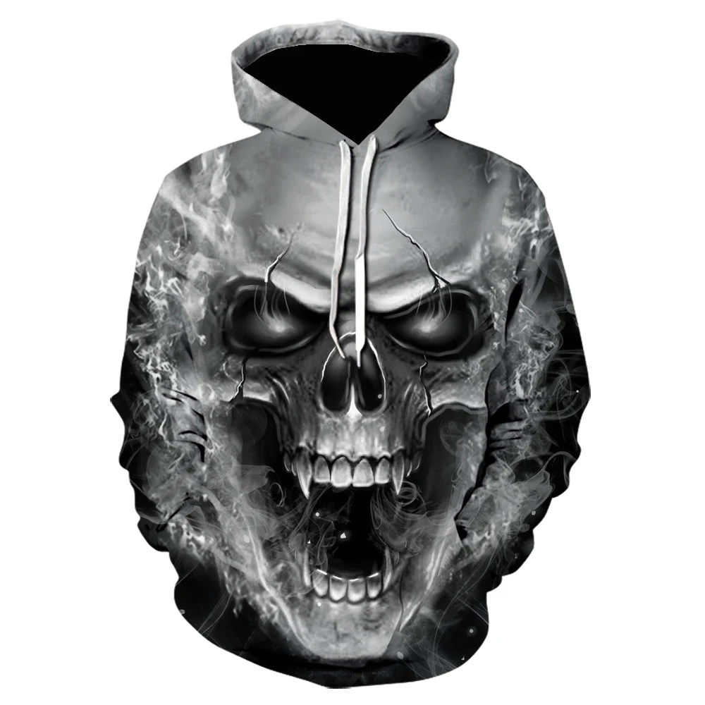 Толстовка мужская с 3D-принтом черепа, уличная свитшот с капюшоном ...
