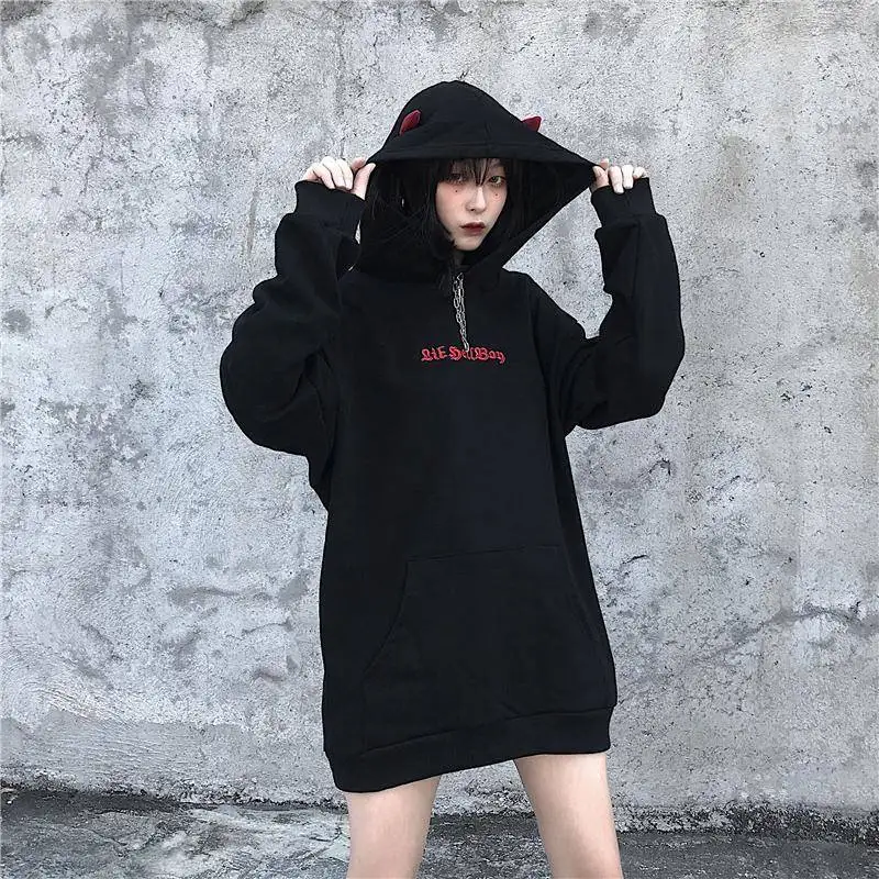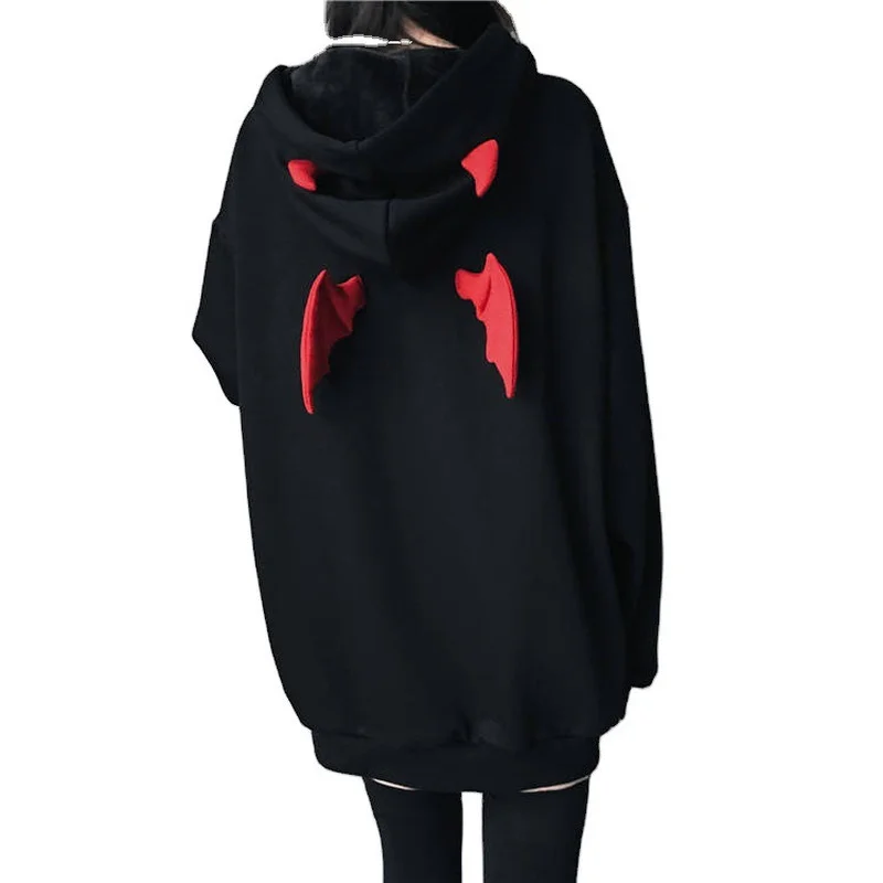 Худи женское оверсайз с 3d дьявольскими рожками, Повседневная Толст...