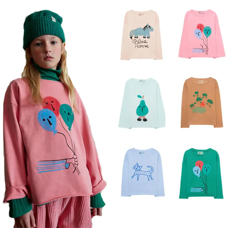 Толстовки для девочек, футболка с длинным рукавом для детей 2021, большие размеры, детские топы, блузка для школьников и мальчиков с мультяшным рисунком, Детские футболки, наряды для подростков