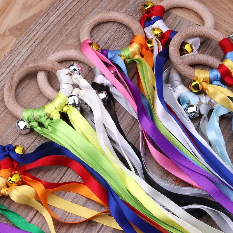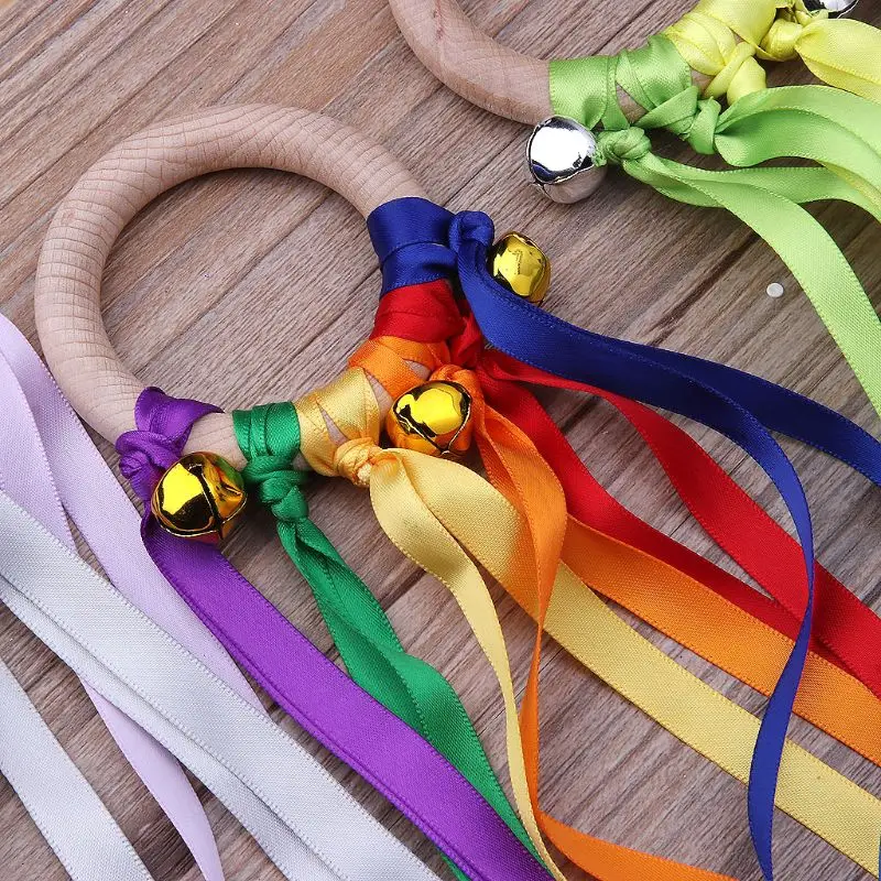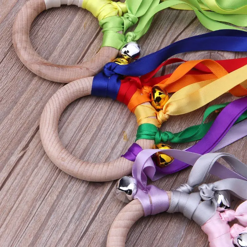 Радуга натуральная деревянная лента погремушка кольцо ребенок прорезыватель новорожденный Монтессори стиль сенсорная игрушка Душ подарок