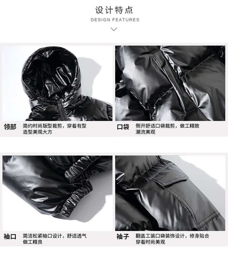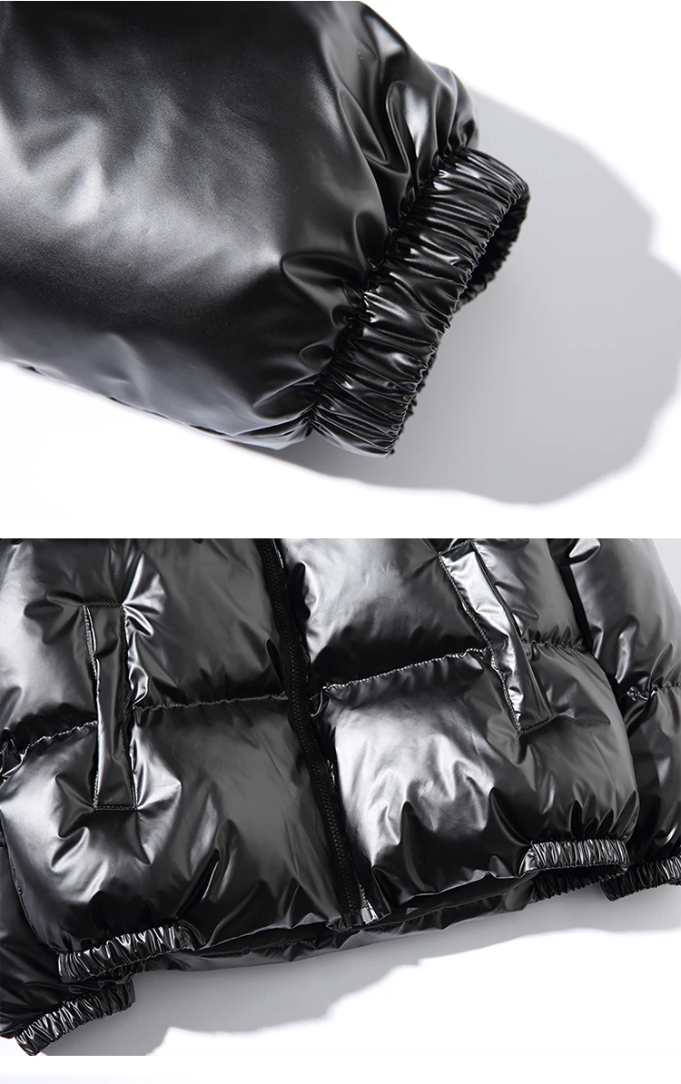 Парка мужская зимняя, блестящая, серебристая, черная, с хлопковой подкладкой