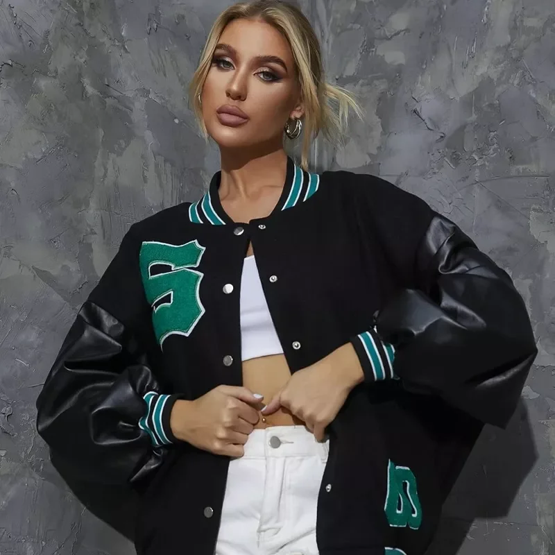 Женская куртка в стиле хип-хоп, Повседневная Свободная куртка большого размера в стиле Харадзюку для бейсбола, осень 2021