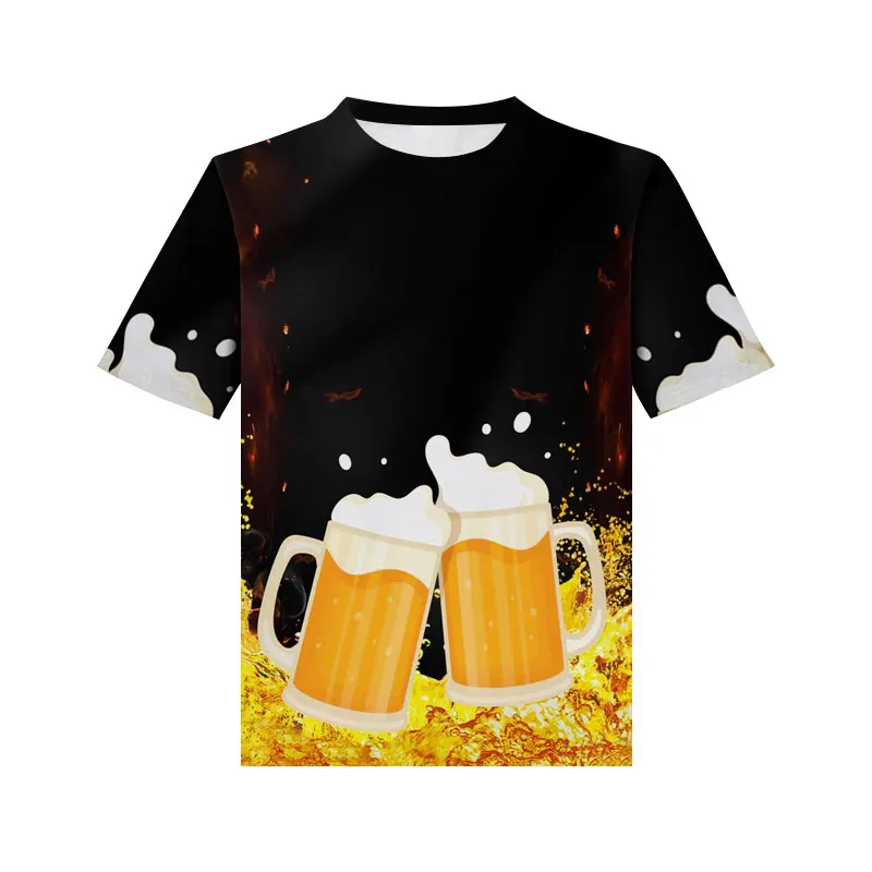 Летняя футболка с принтом пива, 3d мужская футболка с коротким рукавом, топ с круглым вырезом, модная повседневная Уличная одежда