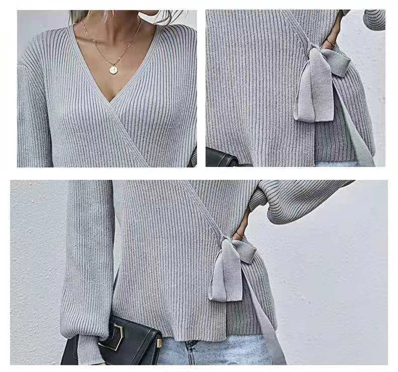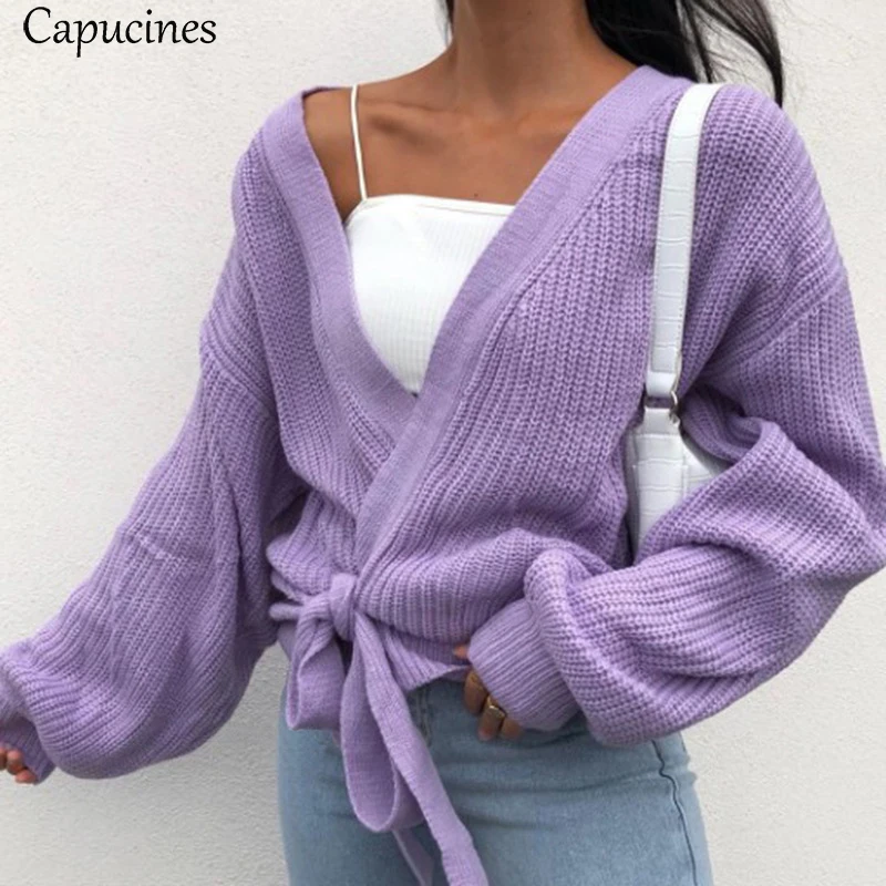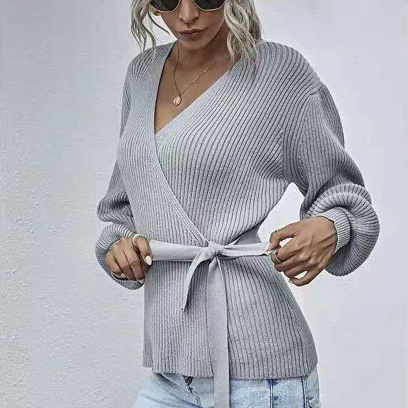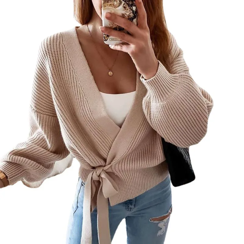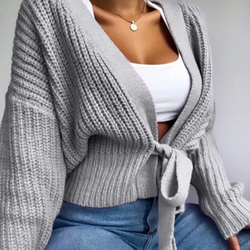 Женский трикотажный кардиган с длинным рукавом, V-образным вырезом