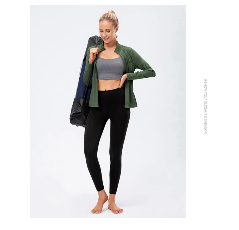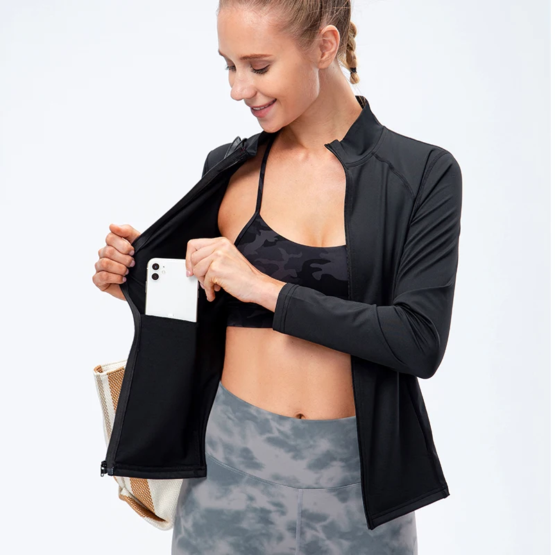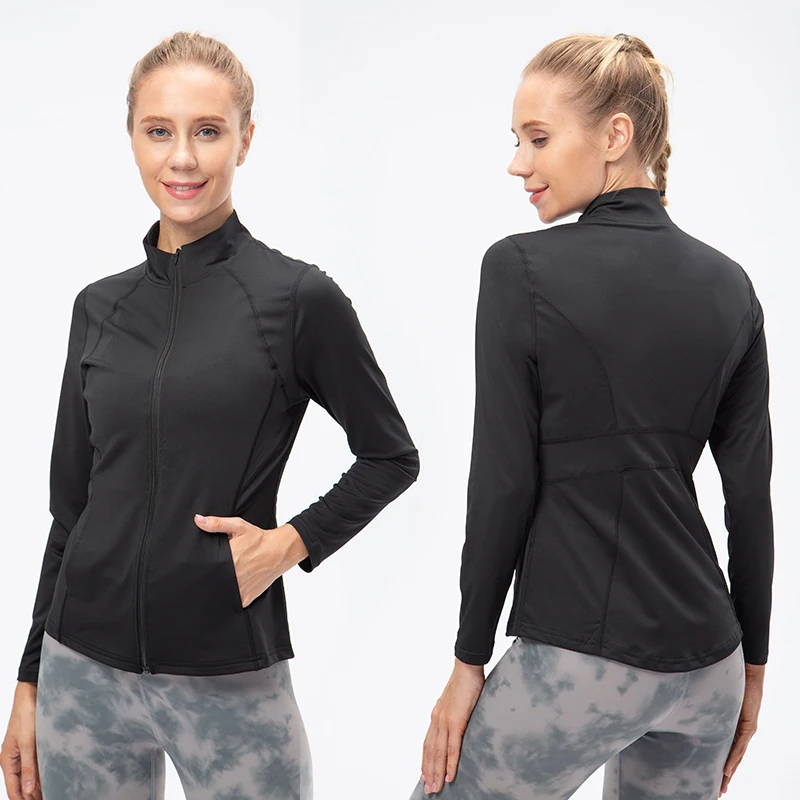 Женская спортивная куртка, облегающие рубашки с длинным рукавом для фитнеса, кроп-топы для йоги, пальто на молнии для бега, быстросохнущая Женская одежда для спортзала