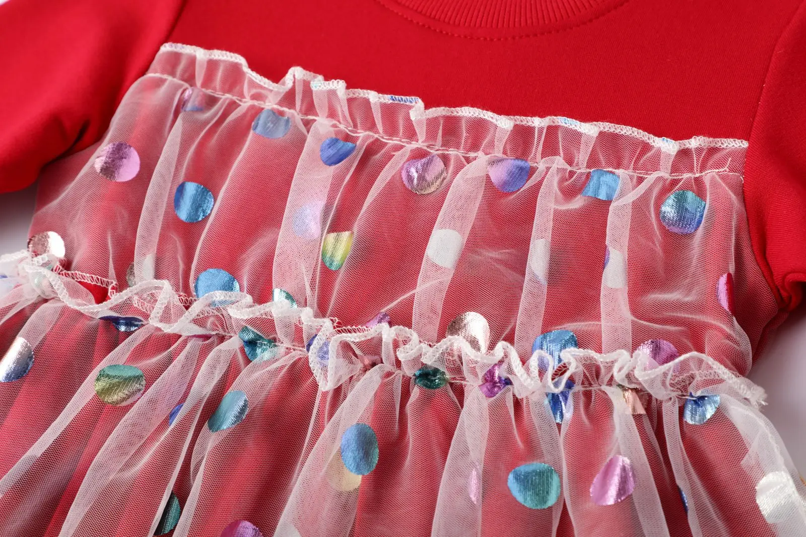 Little maven/платье с длинными рукавами; Осенняя хлопковая одежда красного цвета для маленьких девочек; Милое Повседневное платье для маленьких девочек