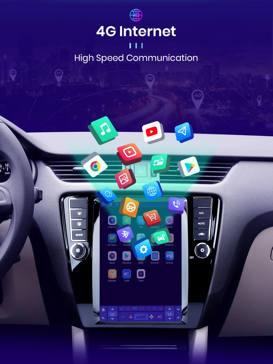 2. Встроенный Carplay/ Android авто: Поддержка беспроводной carplay; Просто используйте телефонный кабель для подключения Android Auto, стабильный и простой в использовании;