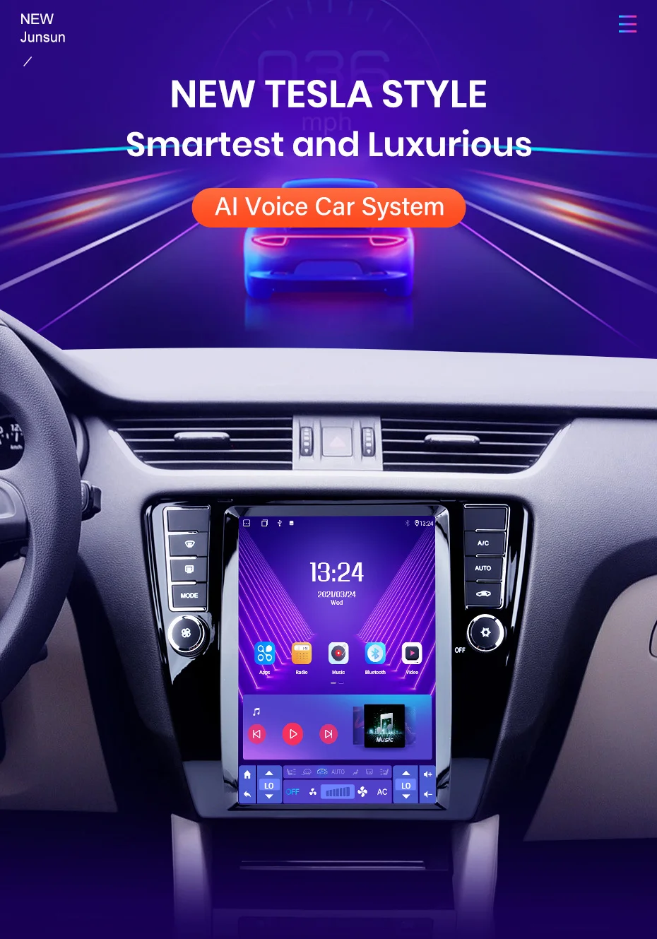 > Голосовое управление AI: только Junsun поддерживает функцию, просто скажите, что командное слово контролирует радио без рук, делает привод более безопасным;