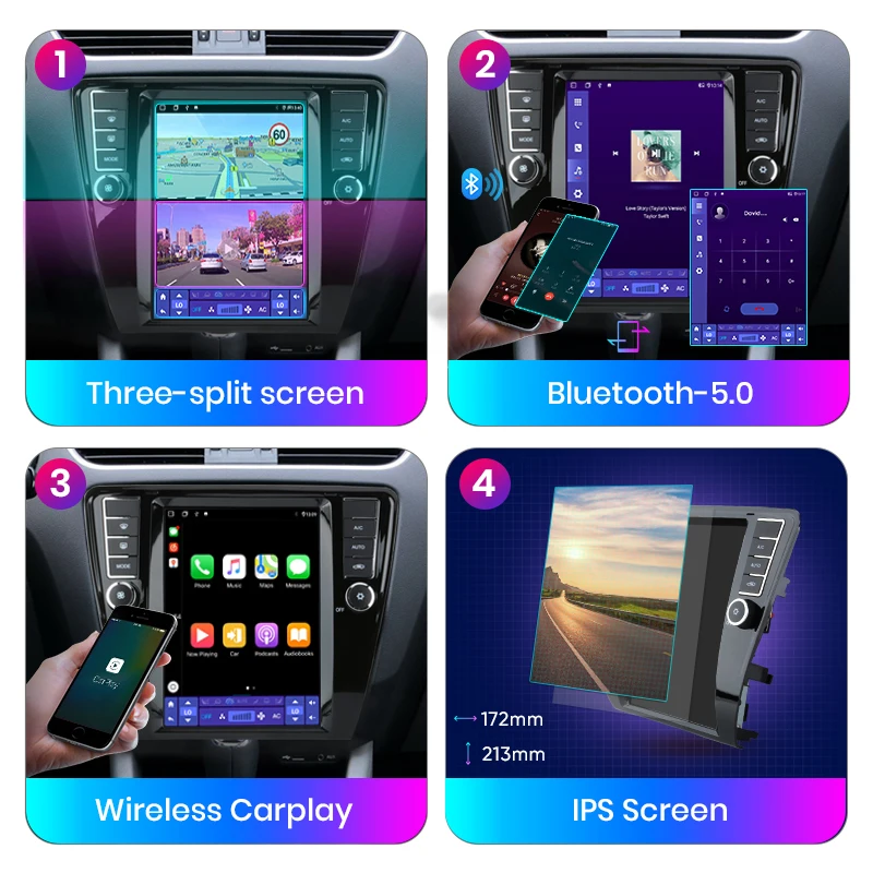 Встроенный беспроводной Carplay и Android авто функция, для беспроводной Carplay, вам просто нужно подключить к телефону с bluetooth; И для Android Auto, вам нужно только использовать usb-кабель для соединения телефона и радио, управления и управления мобильными телефонами через устройство, откройте безопасную жизнь вождения.