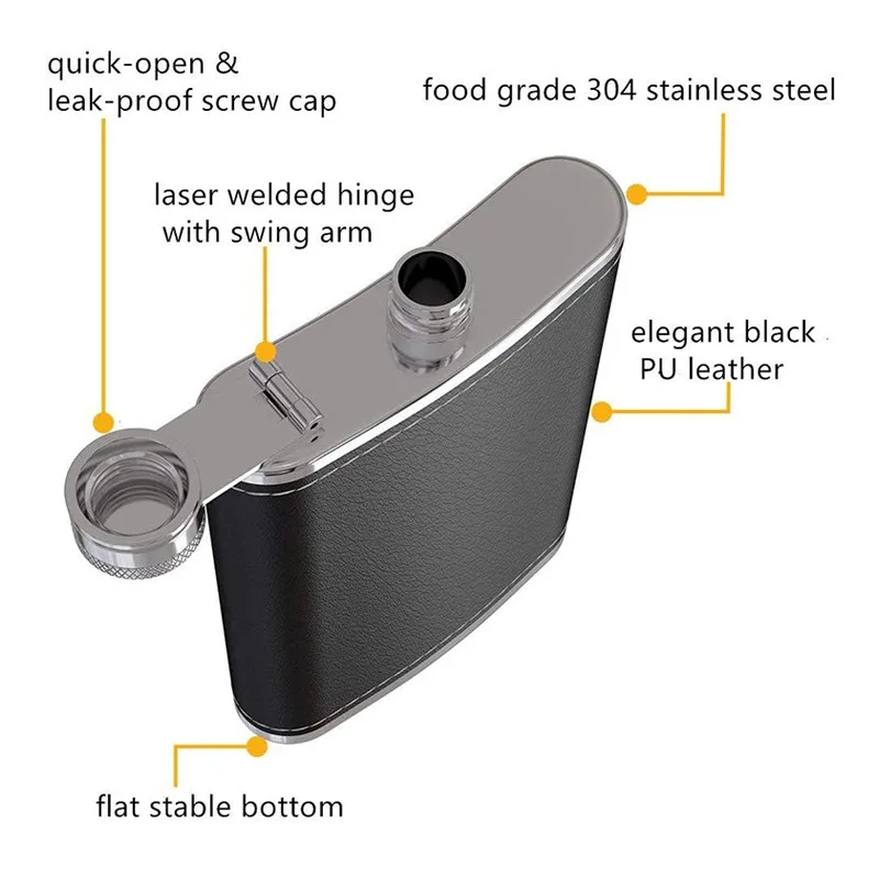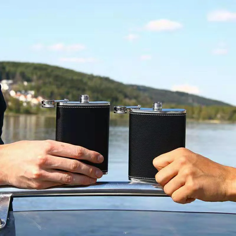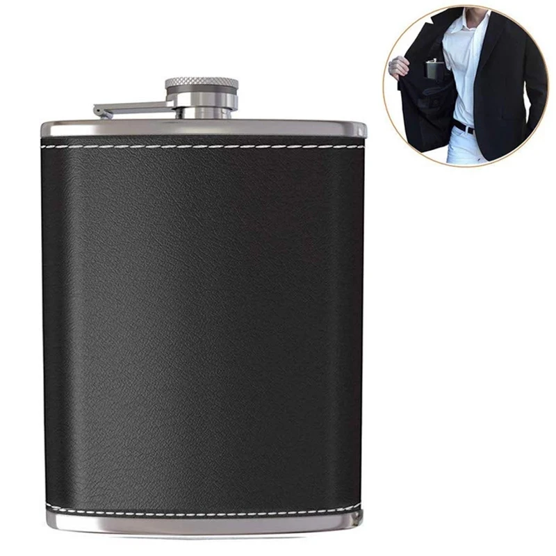 304 фляга из нержавеющей стали для пищевых продуктов премиум-класса из искусственной кожи, фляга для виски, портативная мини-фляга для алкоголя, Мужская бутылка для вина