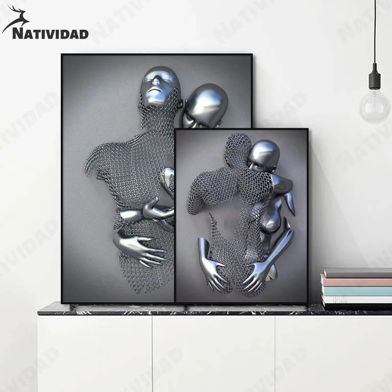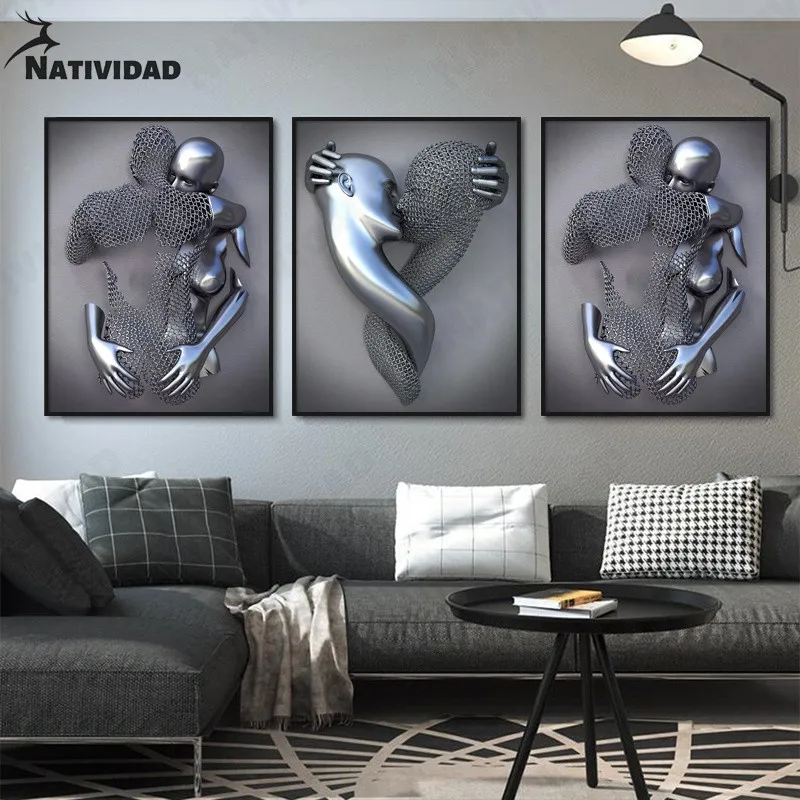 Абстрактный 3D-рисунок на холсте, декор для комнаты, современный металлический художественный постер для гостиной, спальни, украшение для дома