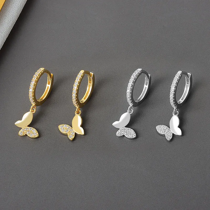 Женские серьги-кольца в виде бабочки из стерлингового серебра 925 п...