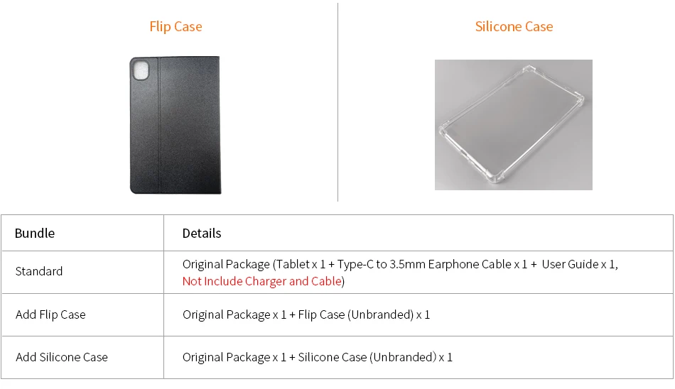 Обратите внимание: планшет не включает зарядное устройство и зарядный кабель!