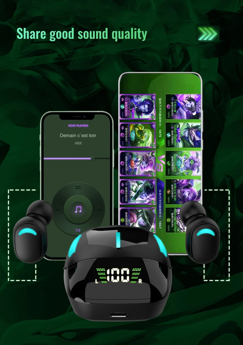 Беспроводная Bluetooth-гарнитура TWS с цифровым дисплеем, игровые внутриканальные мини-наушники Hi-Fi для Iphone, Samsung