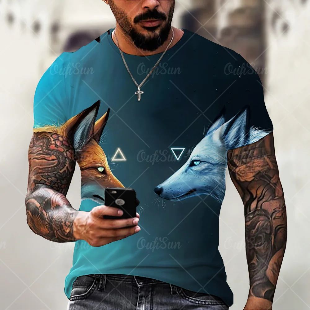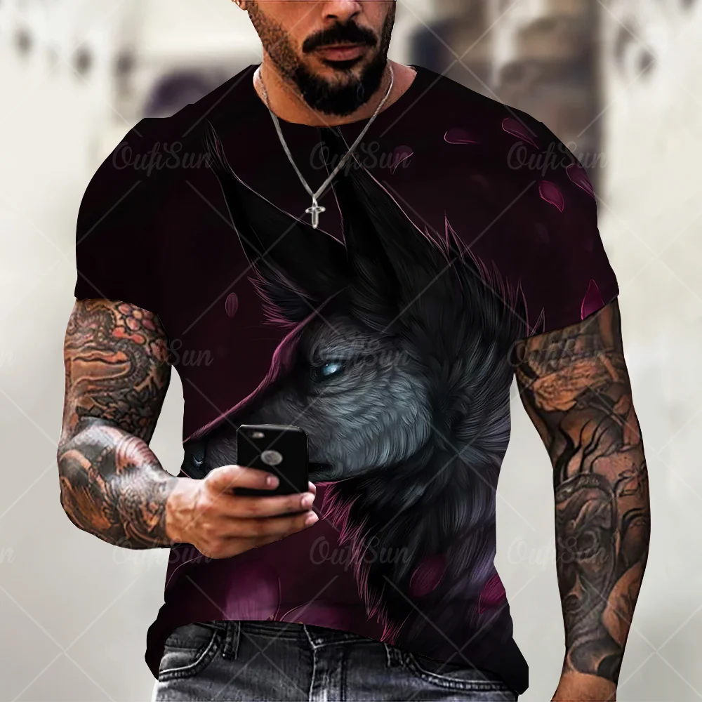 Футболка мужская с 3D-принтом волка, повседневная тенниска оверсайз...