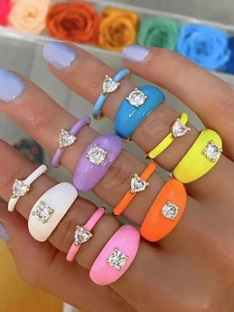 Новинка 2021 г., летний ретро дворец со стразами, кольцо персикового цвета с сердцем, женская модная, яркие цвета, подарок, банкет, свидание, пикник, можно носить