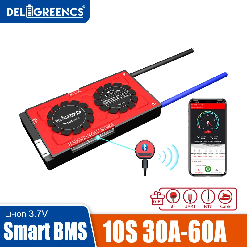 BMS 10S Smart BMS 30A 40A 60A UART 485 Bluetooth CAN BT для 36 В литий-ионного аккумулятора, блок хранения энергии с балансом