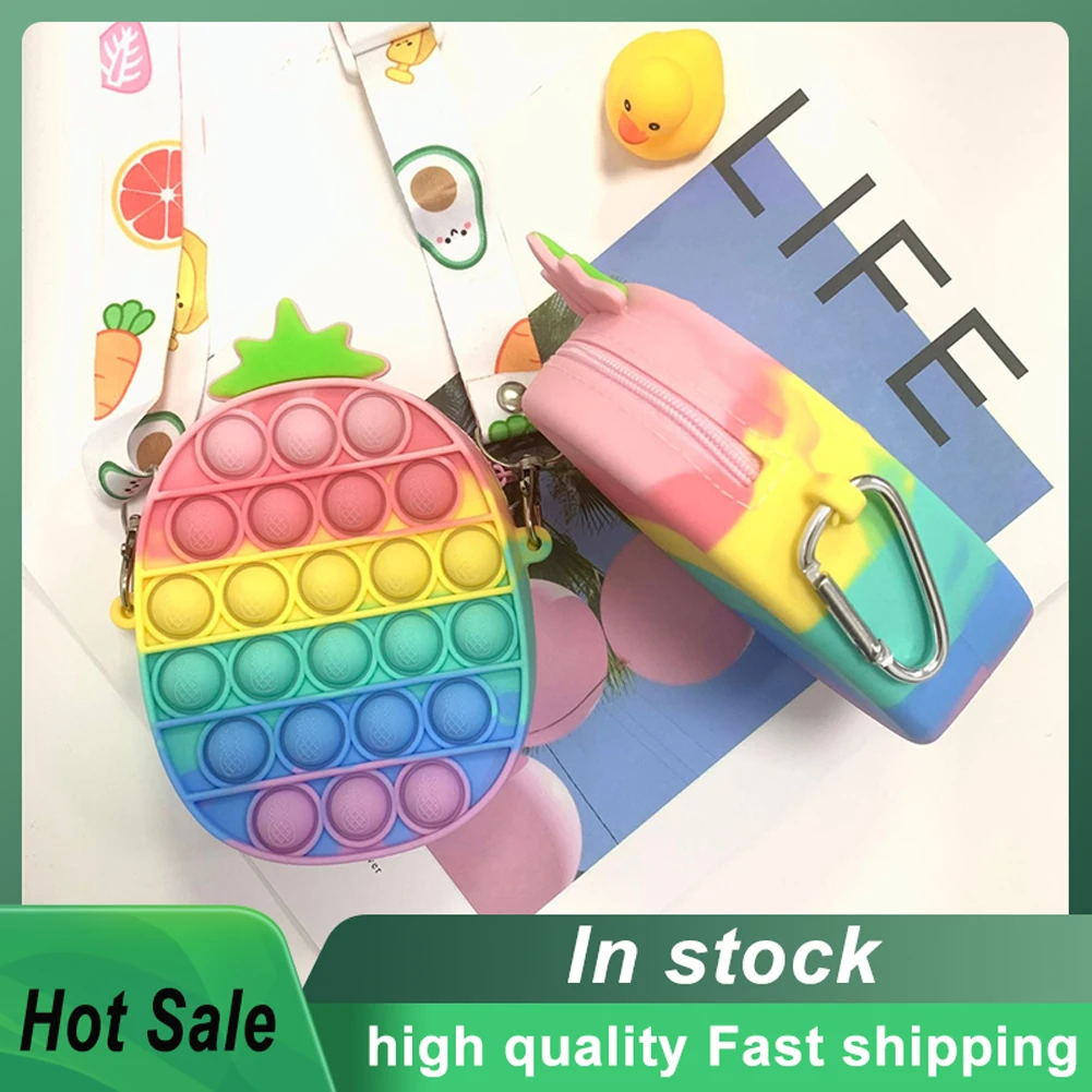 НОВАЯ Портативная сумка для непоседы с пузырьками, клубника, ананас, модель, антистресс, сенсорная игрушка, подарок для детей