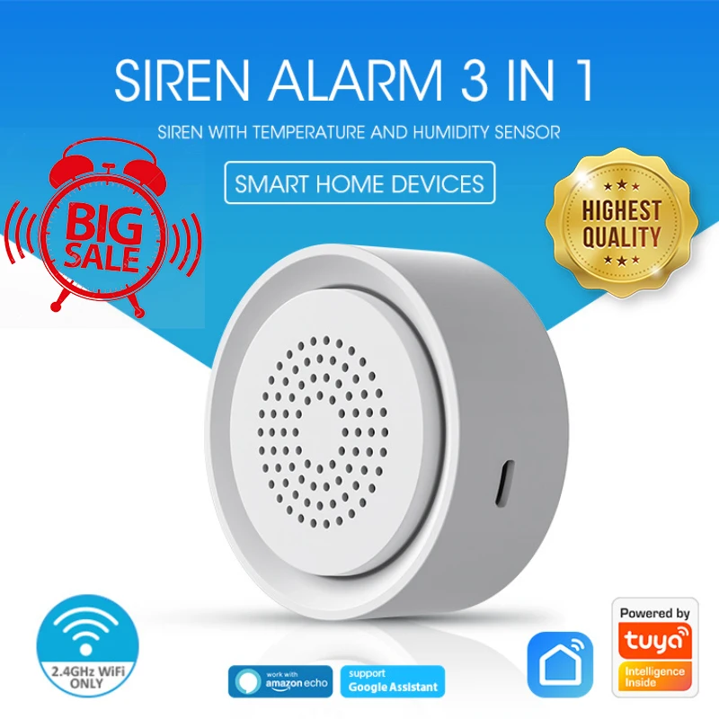 Tuya Smart Siren Alarm, беспроводной датчик, звуковой детектор светильник, сирена, дистанционное управление через приложение, можно заряжать с помощью USB-кабеля Smart Life