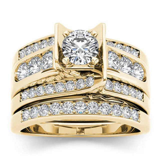 Изысканный женский набор свадебных колец, модные золотые обручальны...