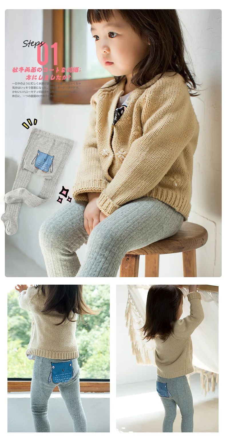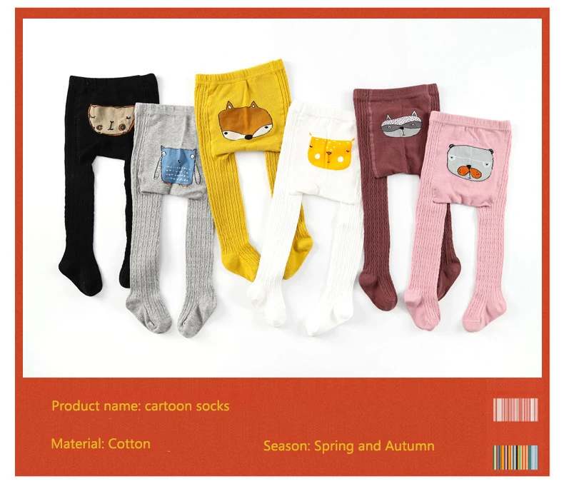 Детские хлопковые колготки, осенне-зимние теплые облегающие колготки для новорожденных с милыми животными