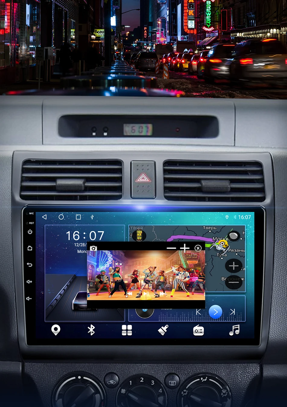 Поддержка видео и приложения DVRПлавающего окна, настроить положение дисплея и сделать ваш опыт вождения полон прохладных цветов.