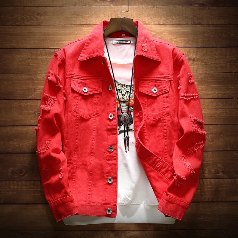 Джинсовая куртка-бомбер мужская, тонкая рваная джинсовая куртка в ковбойском стиле, модный тренд, весна-осень