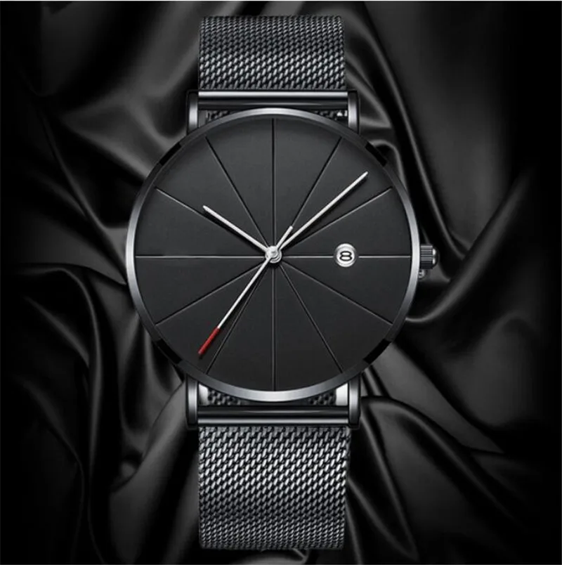 Часы мужские ультратонкие, роскошные модные, со стальным сетчатым р...