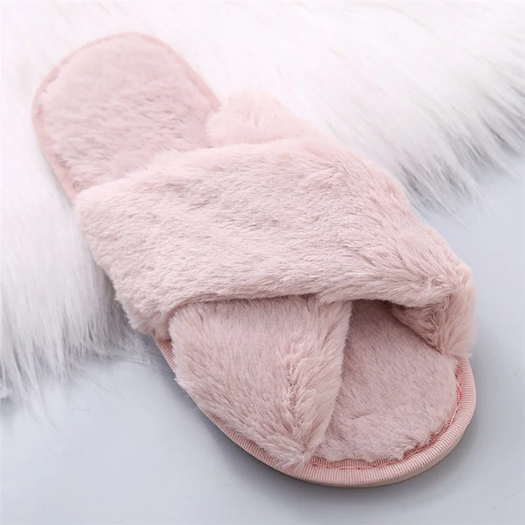 Тапочки женские меховые, на плоской подошве, с перекрестными ремешками