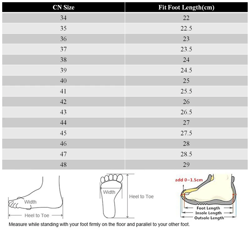 Пожалуйста, выберите размер, который соответствует длине вашей стопы + 1-1,5 см