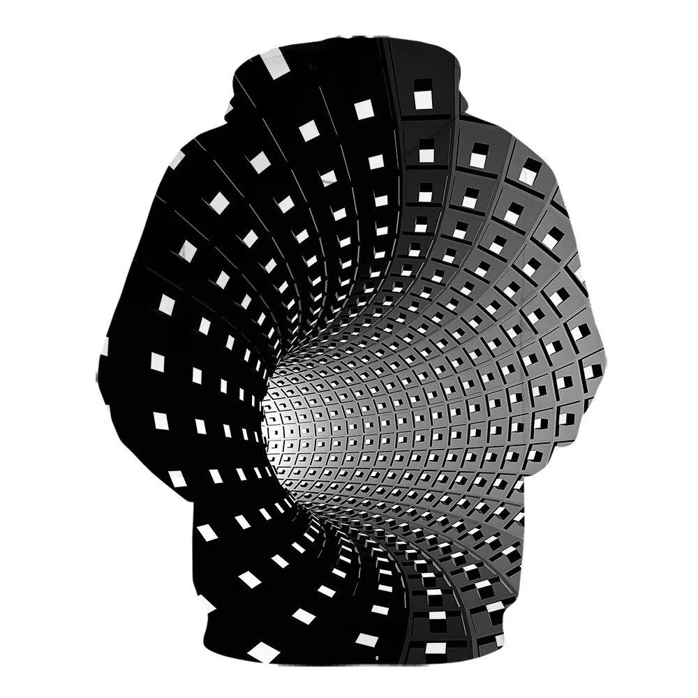 Толстовка мужская, черно-белая, с 3D-принтом водоворот, уличная оде...