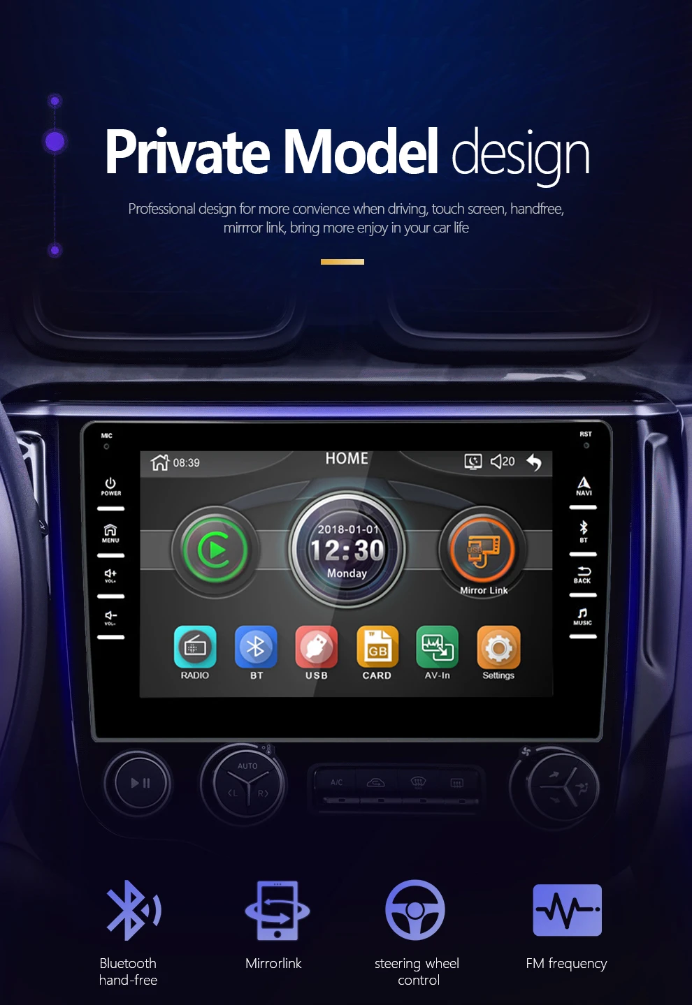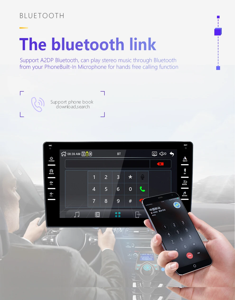 MP5-плеер с сенсорным экраном 8 дюймов, Bluetooth, USB, FM, камера заднего вида