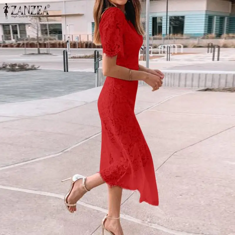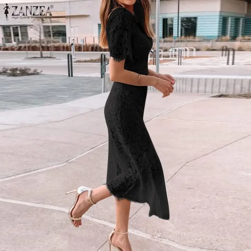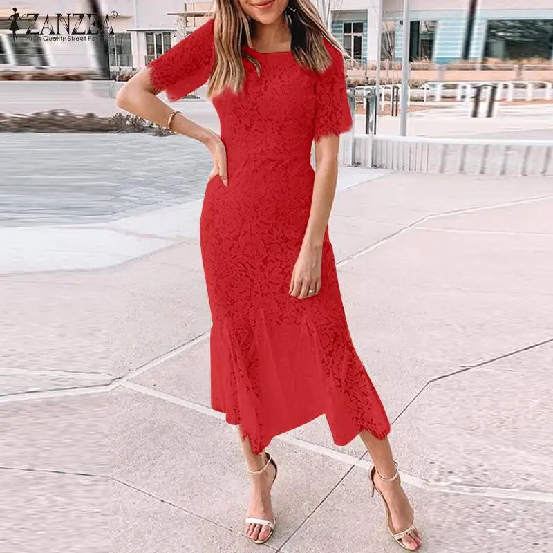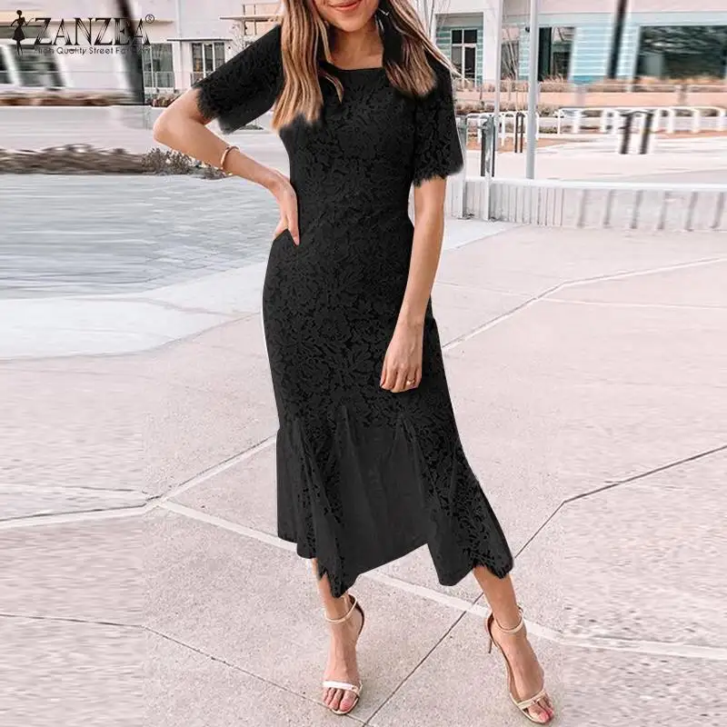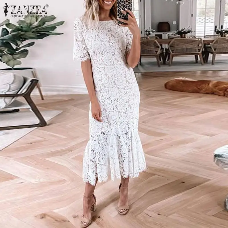 Женский Повседневный кафтан с коротким рукавом, элегантное кружевное вязаное крючком платье-Русалка ZANZEA, винтажное Цветочное платье-Русалка средней длины, вечернее офисное платье для лета