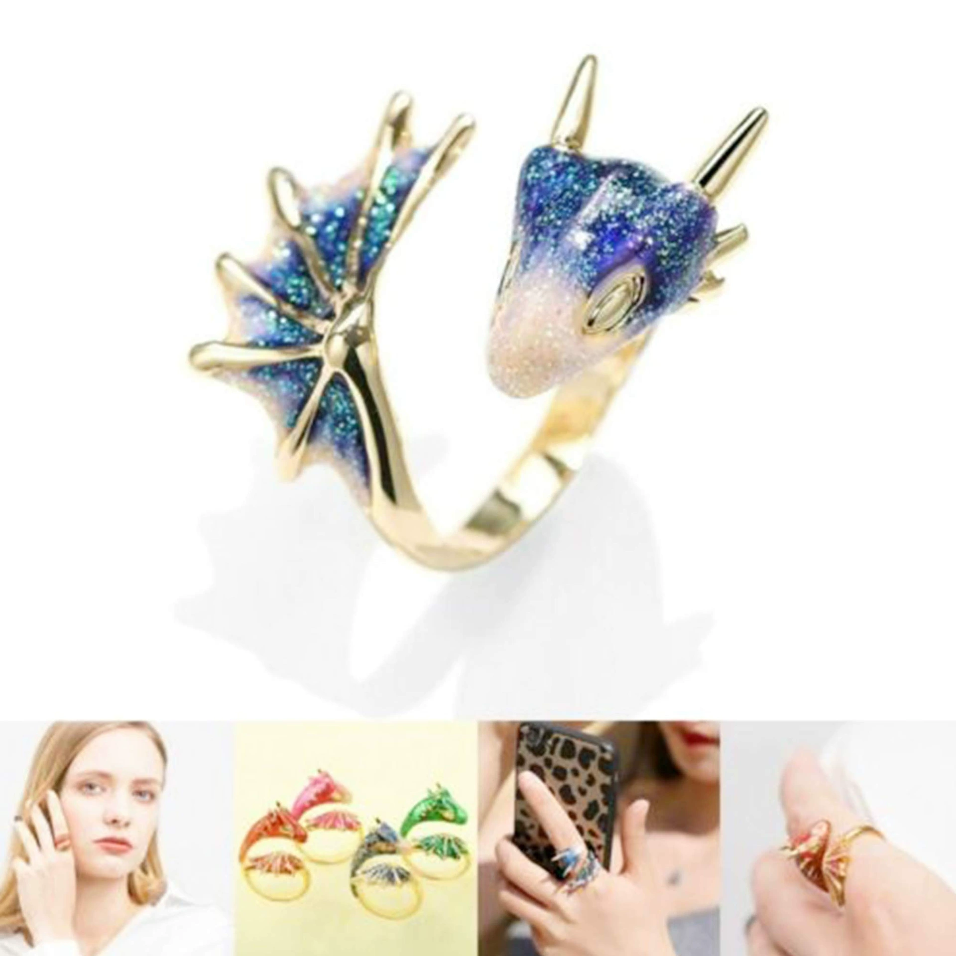 Оригинальный дизайн, Открытое кольцо с маленьким голубым драконом звездного неба, красочное свежее и уникальное очарование ручной работы, женское серебряное ювелирное изделие