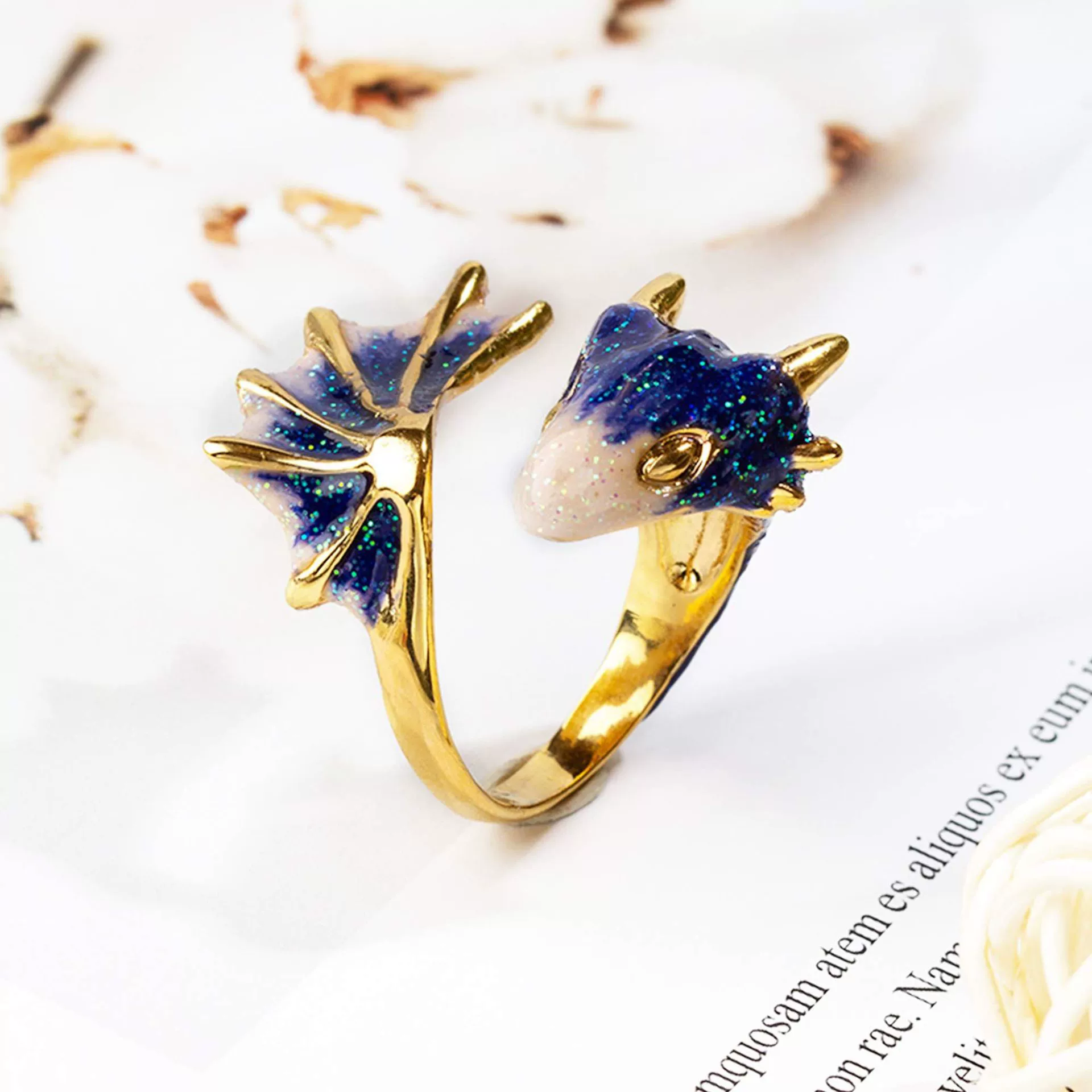 Оригинальный дизайн, Открытое кольцо с маленьким голубым драконом з...