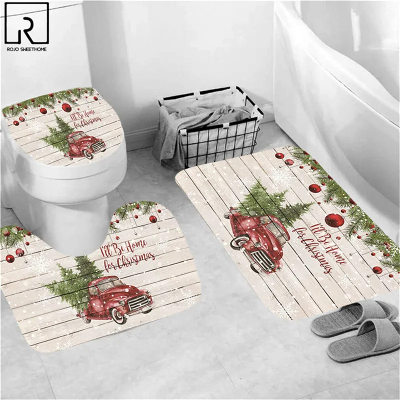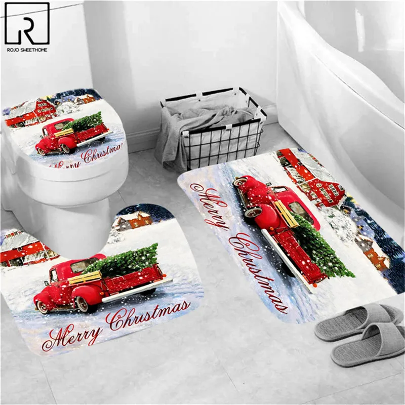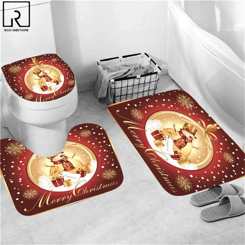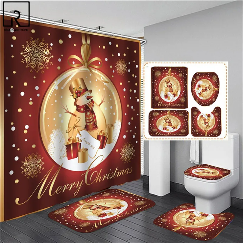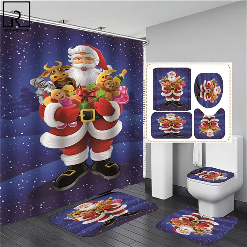 Синий Санта с рождественским подарком, занавеска для душа, золотой снеговик, праздничный декор, набор ковриков для ванной, мягкий ковер, коврик, аксессуары для ванной комнаты