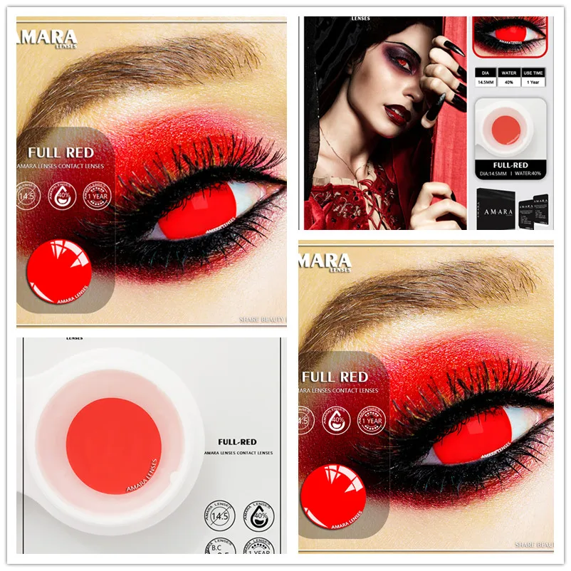 1 пара цветных контактных линз ed для косплея на Хэллоуин, цветные контактные линзы для аниме, цветные линзы для цветных линз глаз, сумасшедшие Красные линзы