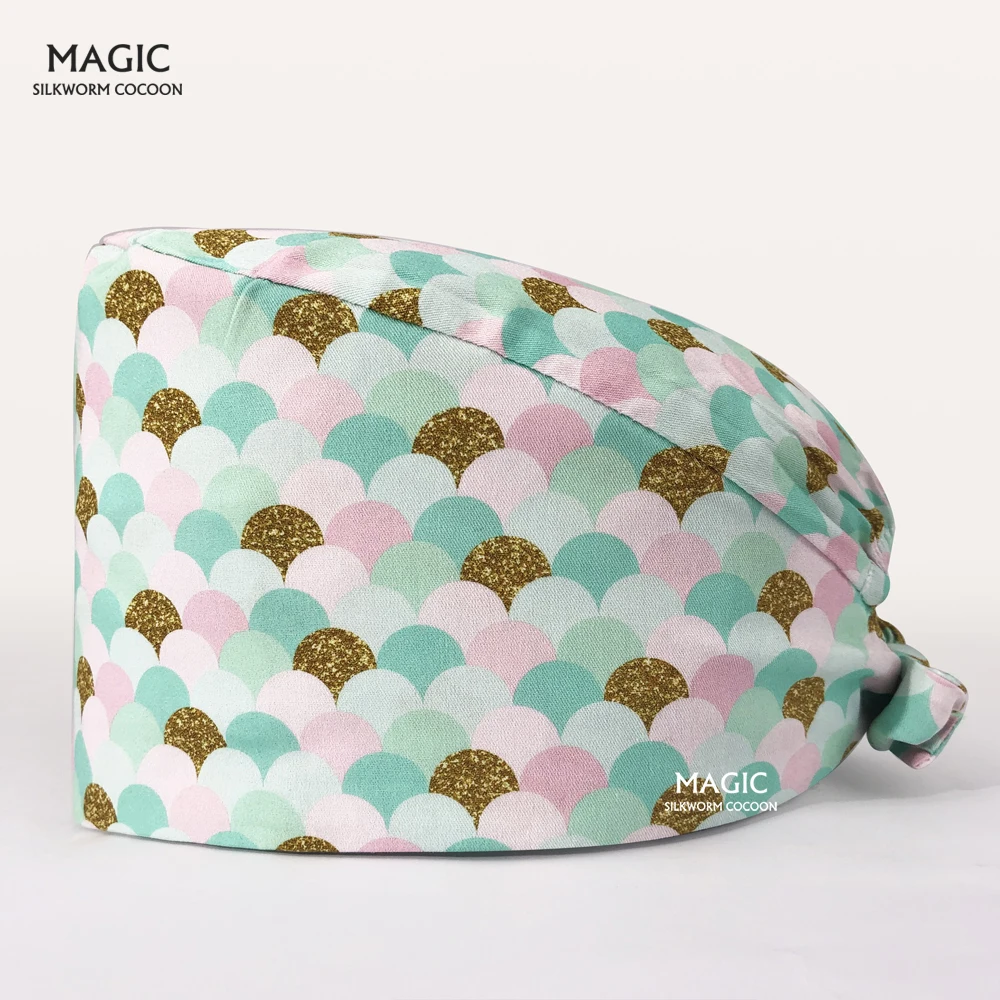 Шапка-медицинские шапочки для косметолога, мультяшный матовый принт...
