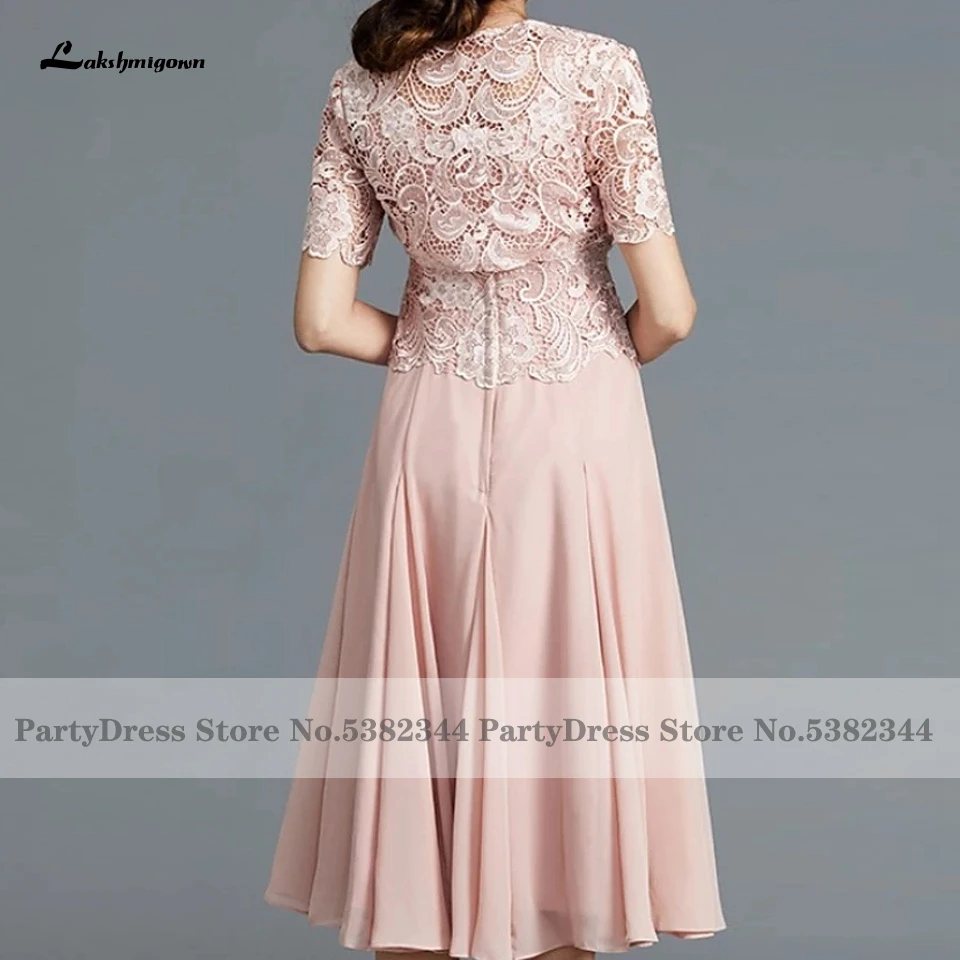 Светло-розовое вечернее платье Lakshmigown для матери невестыжениха, с кружевным жакетом, трапециевидного силуэта, Свадебный гостевой костюм