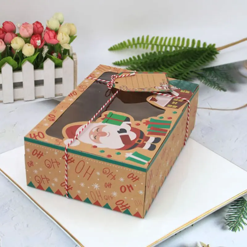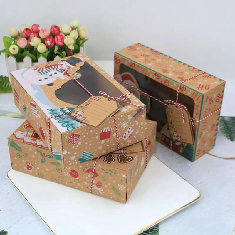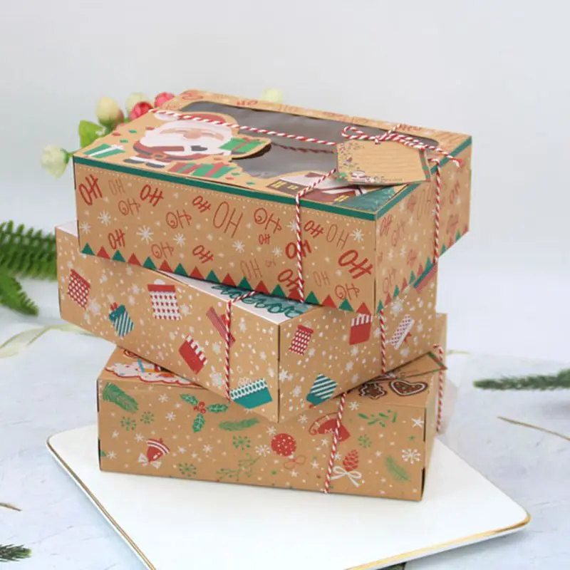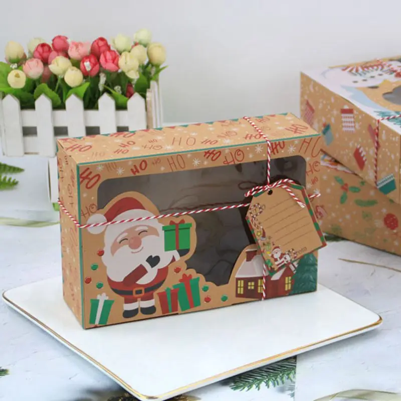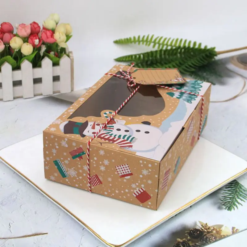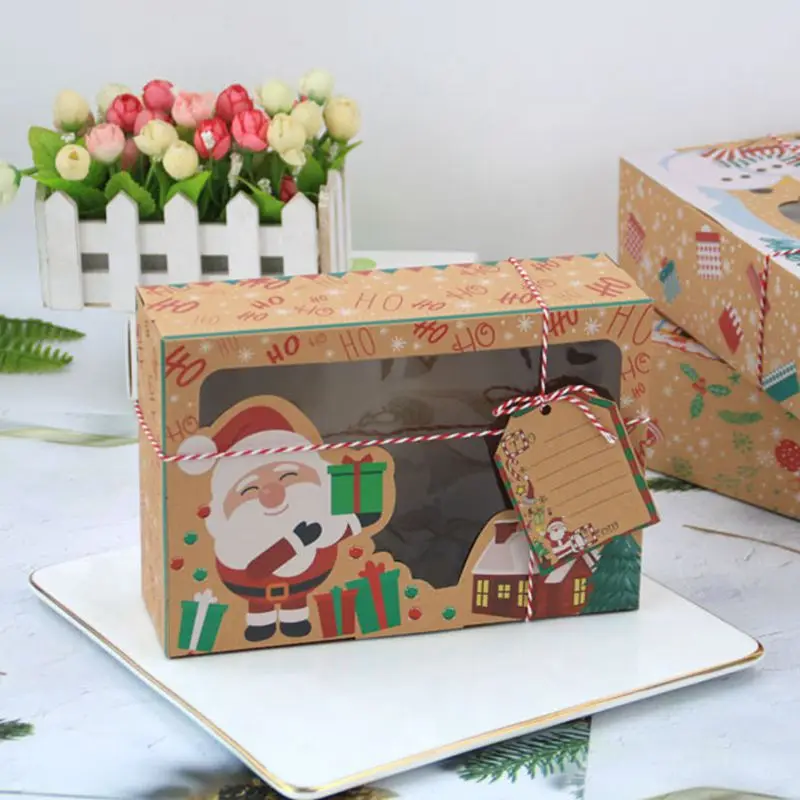 3 шт. подарочные коробки из крафт-бумаги, Рождественская Подарочная коробка, держатели для сувениров, коробка для конфет, коробки для печенья с подарком снеговиком, Санта-Клаусом