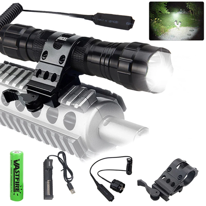 Светодиодный фонасветильник для охотничьего ружья, 1000lm 501B XM-L T6Q5, тактический прицел, крепление на рейку 45 , пульт дистанционного управления, зарядное устройство 18650