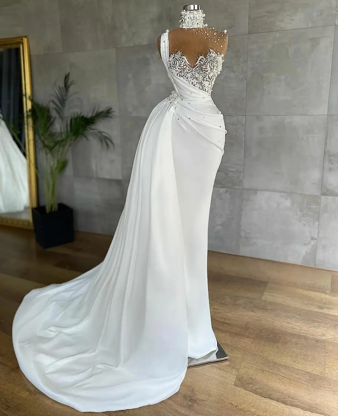 Прозрачная Тюлевая юбка-годе, свадебные платья с юбкой-годе, 2022, прозрачный вырез, бусины, рукава-крылышки, иллюзионные пуговицы, свадебные платья