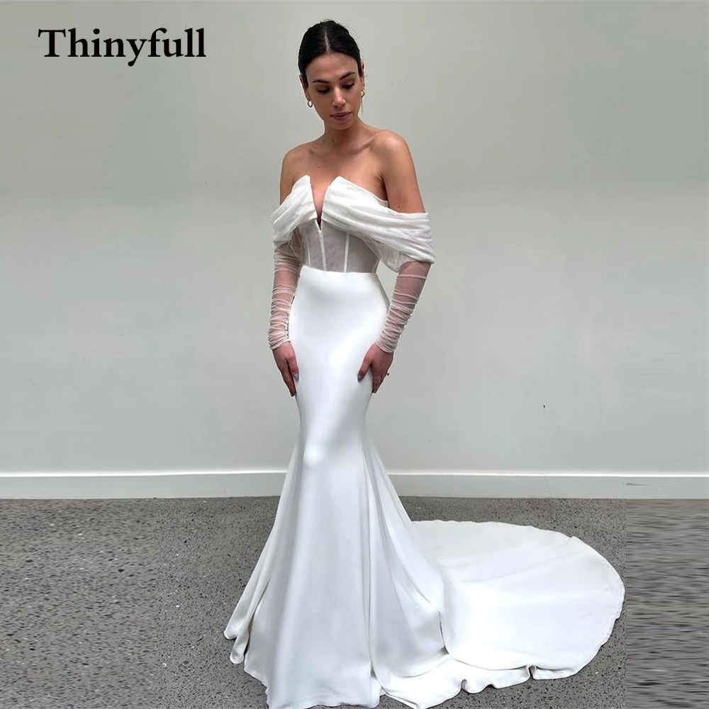 Thinyfull пляжные свадебные платья с юбкой-годе с открытыми плечами и длинными рукавами